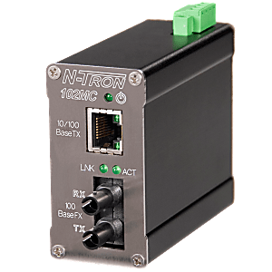 Der 102MC Industrial Media Converter ist ein nicht verwaltetes Plug-and-Play-Gerät, das 10/100BaseTX in 100BaseFX konvertiert und über einen RJ-45-Kupferanschluss und einen 2 km langen Multimode-Glasfaseranschluss mit ST-Stecker verfügt.