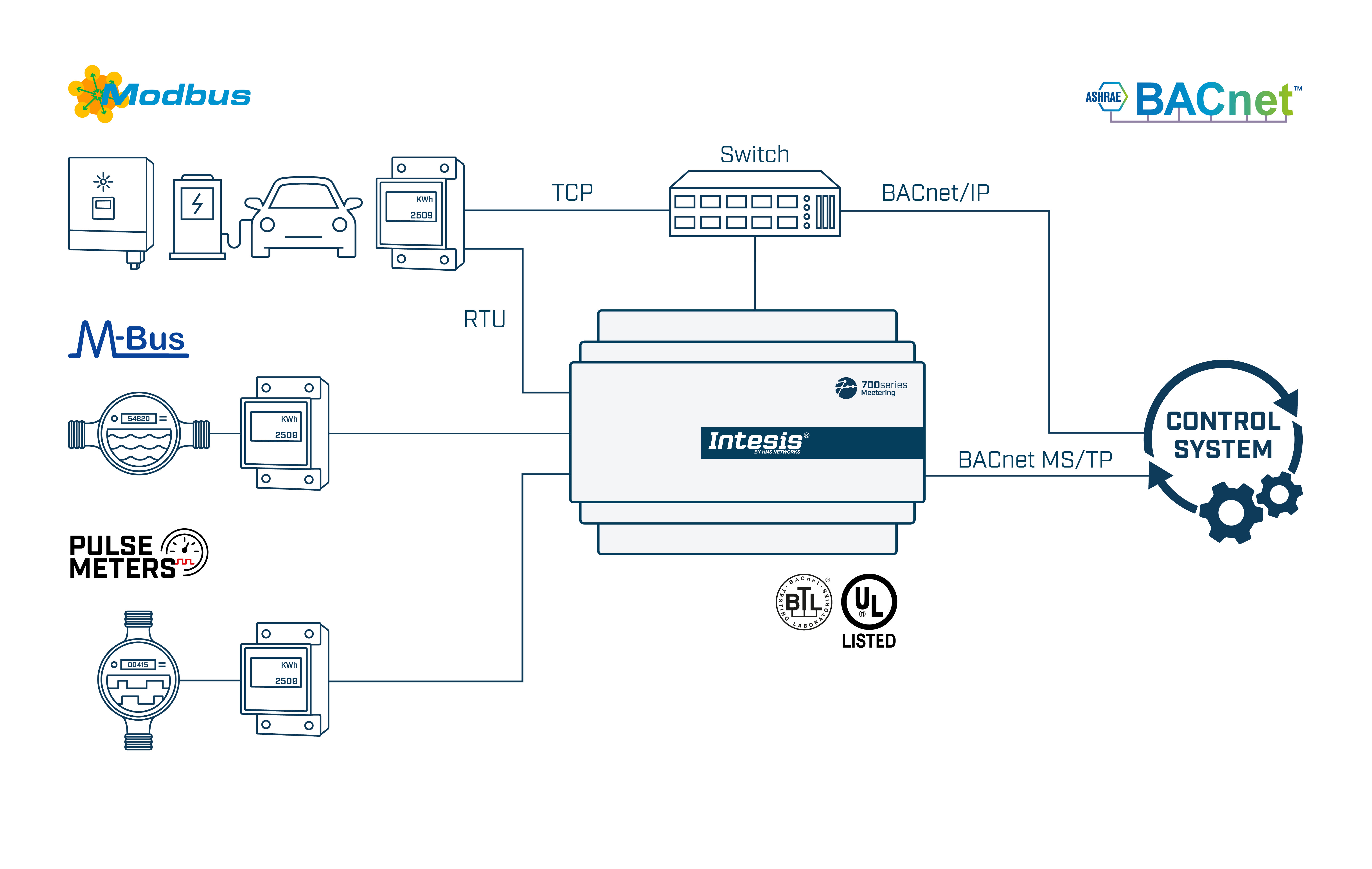 M-Bus, Modbus und digitale Impulse zu BACnet