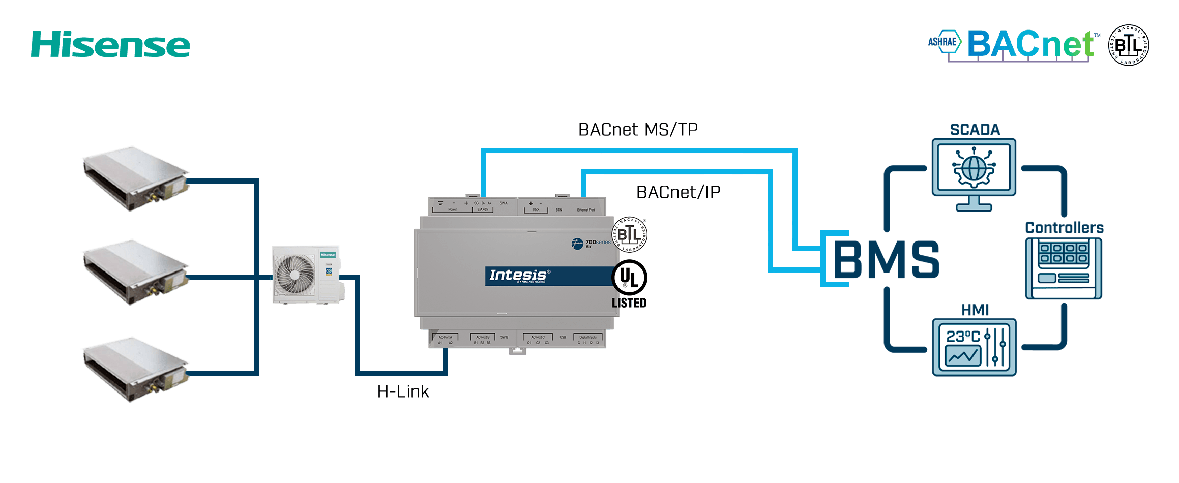Hisense zu BACnet/IP & MS/TP - Bis zu 4 Innengeräte