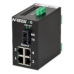 The 305FX Unmanaged Industrial Ethernet Switch, SC 40km is a 5-port solution with four 10/100BaseTX RJ-45 ports and one 100BaseFX Singlemode 40km fiber port with SC connectors. For replacement options, please see the 105FXE-SC-40, 708FXE2-SC-40, NT-5006-DM2-0000, or the NT-5008-FX2-SC40.
