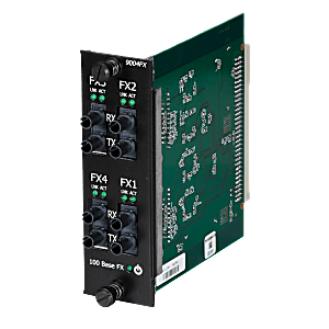 The 9004FX-ST is a versatile slide-in module offering four 100BaseFX 2km, multimode fiber ports with ST connector.