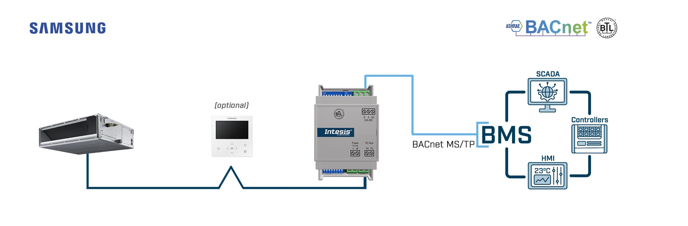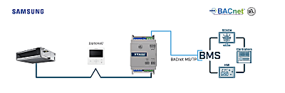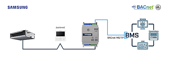 This gateway enables full bidirectional communication between Samsung NASA systems and BACnet MS/TP control systems.