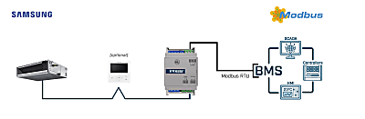 This gateway enables full bidirectional communication between Samsung NASA systems and Modbus RTU control systems.