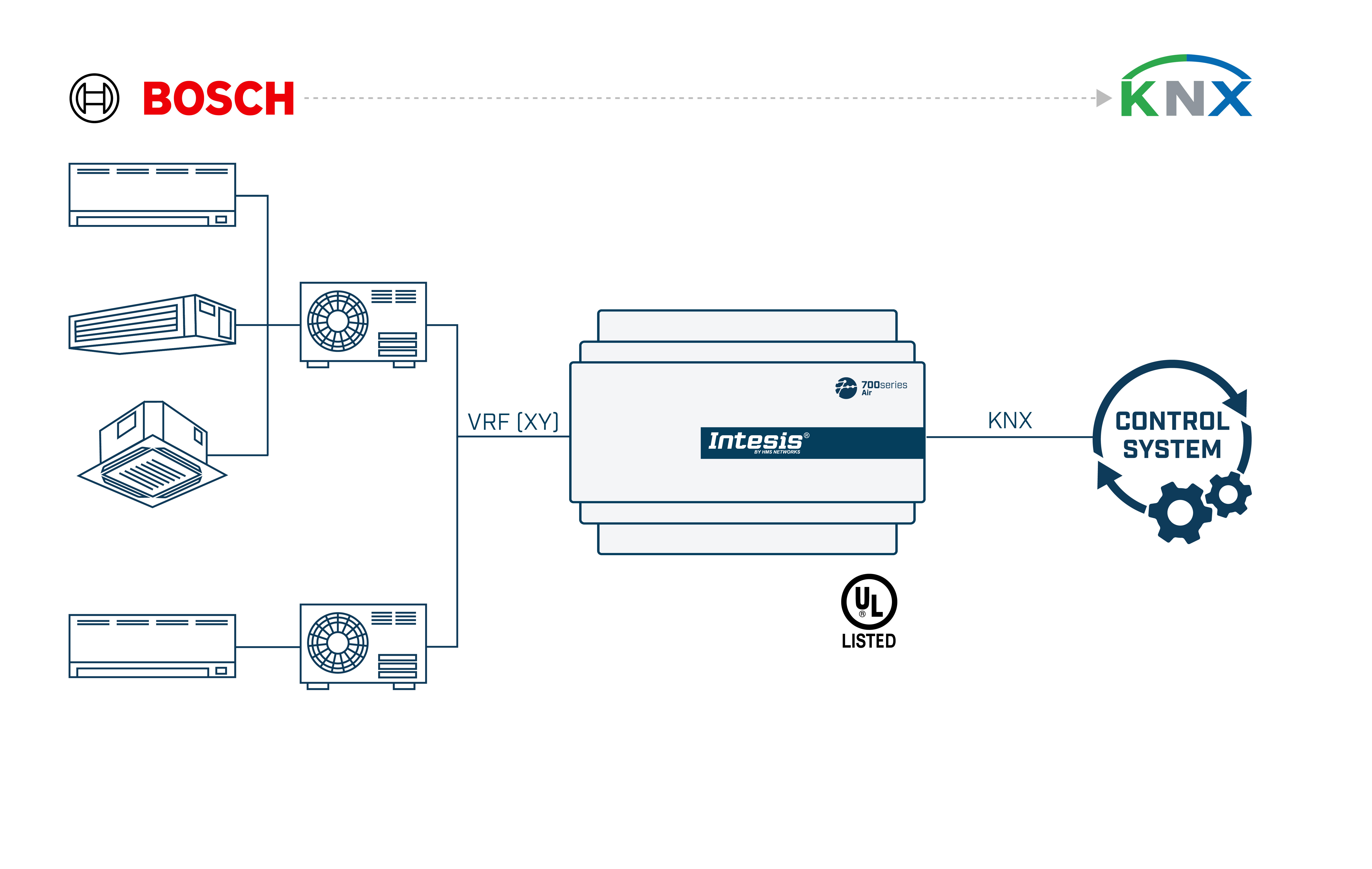 The Bosch application has been specially designed to allow bidirectional control and monitoring of Bosch Air Flux and Mini-VRF systems from a KNX installation. The solution allows the integration of up to 64 indoor units from a single interface.