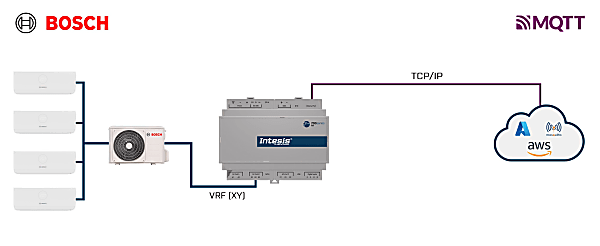 Connect Bosch multi-indoor unit systems to cloud and IoT platforms using MQTT, for real-time control, monitoring, and energy optimization. This solution allows the integration of up to 64 indoor units.