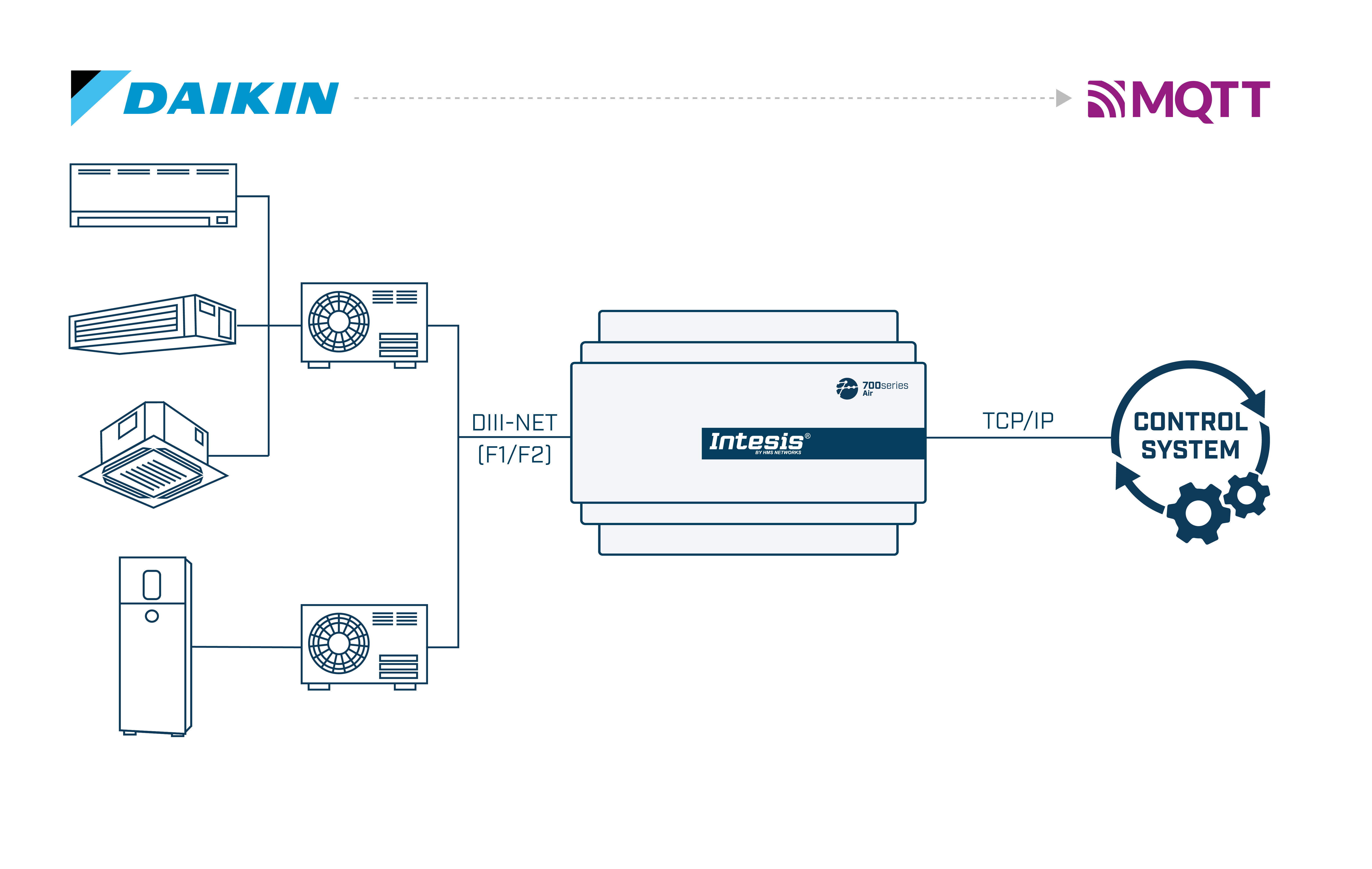 Connect Daikin multi-indoor unit systems to cloud and IoT platforms using MQTT, for real-time control, monitoring, and energy optimization. This solution allows the integration of up to 64 indoor units.