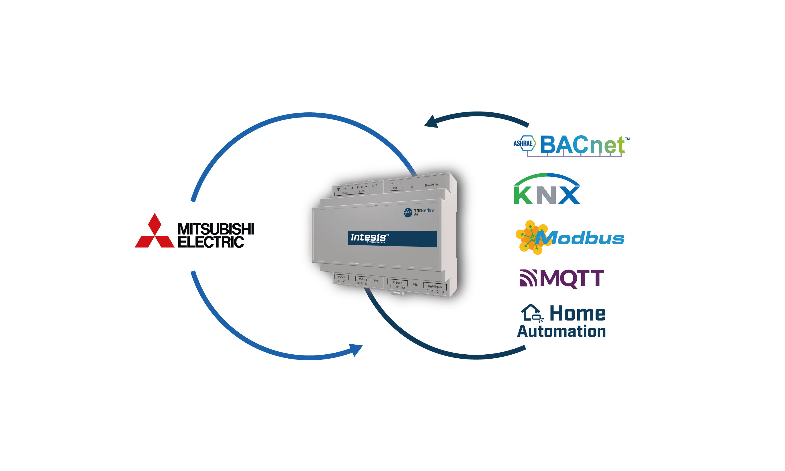 The Mitsubishi Electric application has been specially designed to allow bidirectional control and monitoring of Mitsubishi Electric City Multi systems from a Home Automation system. The solution allows the integration of up to 50 groups from a single interface.