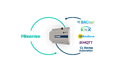 The Hisense application allows bidirectional control and monitoring of Hisense VRF systems from a BMS, SCADA, PLC, or any controller working as a BACnet/IP server or a BACnet MS/TP client. This solution allows the integration of up to 4 indoor units.