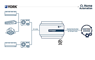 Native, bidirectional integration of York VRF systems into Control4, ELAN, and other home automation platforms, enabling direct control and real‑time monitoring of up to 4 indoor units from a single gateway.