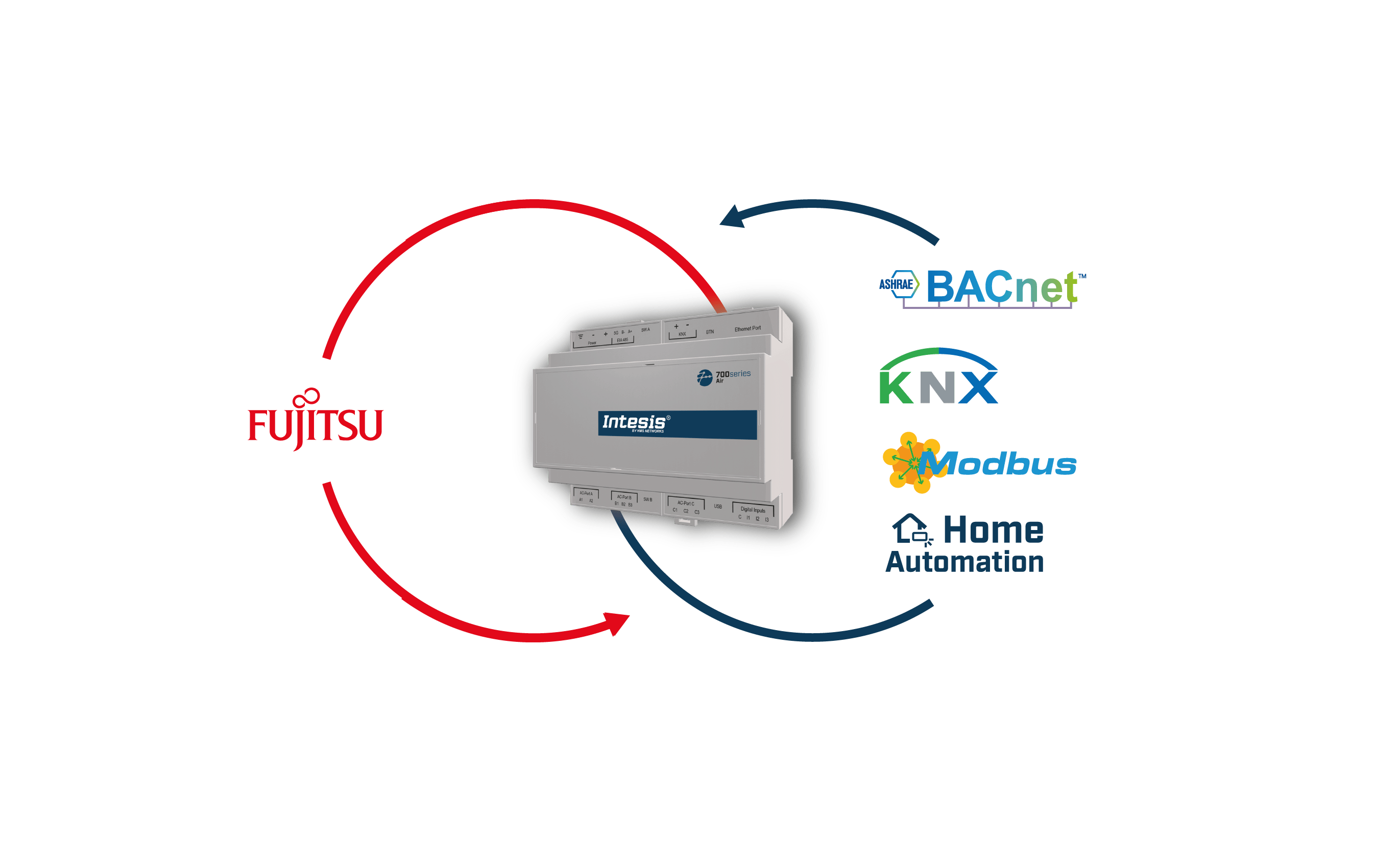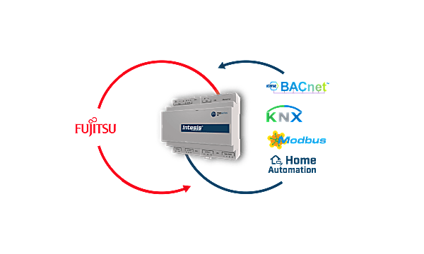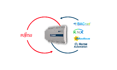 The Fujitsu application has been specially designed to allow bidirectional control and monitoring of Fujitsu VRF systems from a KNX installation. The solution allows the integration of up to 16 indoor units from a single interface.