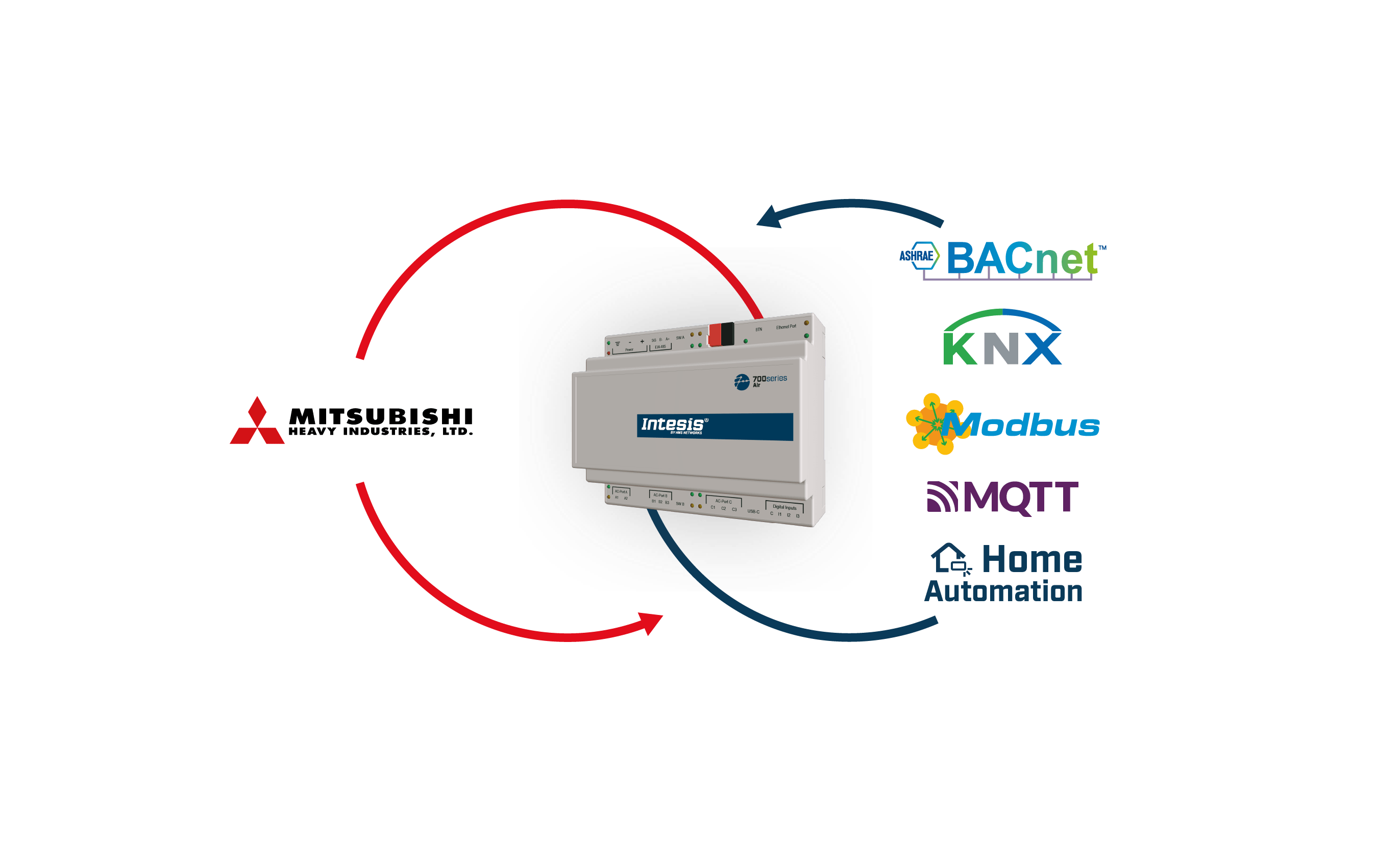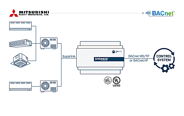 The Mitsubishi Heavy Industries application has been specially designed to allow bidirectional control and monitoring of Mitsubishi Heavy Industries VRF systems from a BMS, SCADA, PLC, or any other device working as a BACnet/IP server or a BACnet MS/TP client. The solution allows the integration of up to 64 indoor units from a single interface.