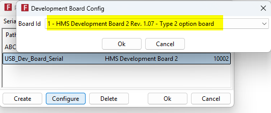 For this, you simply go to the transport path selection window again in the Transport Provider. Select the development board transport path and click on 'Configure'.