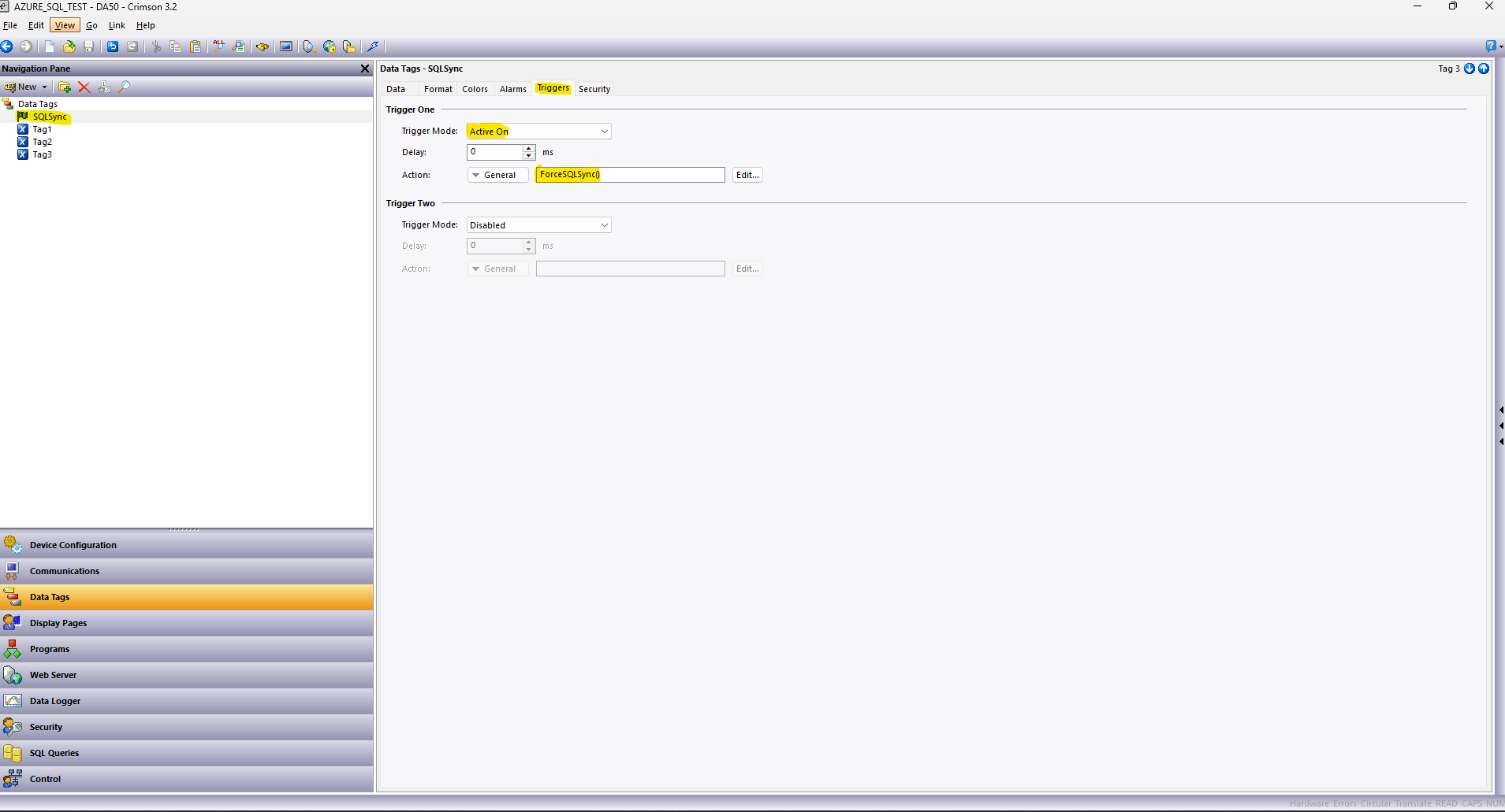 Example of ForceSQLSync connected to a flag tag see figure 6.