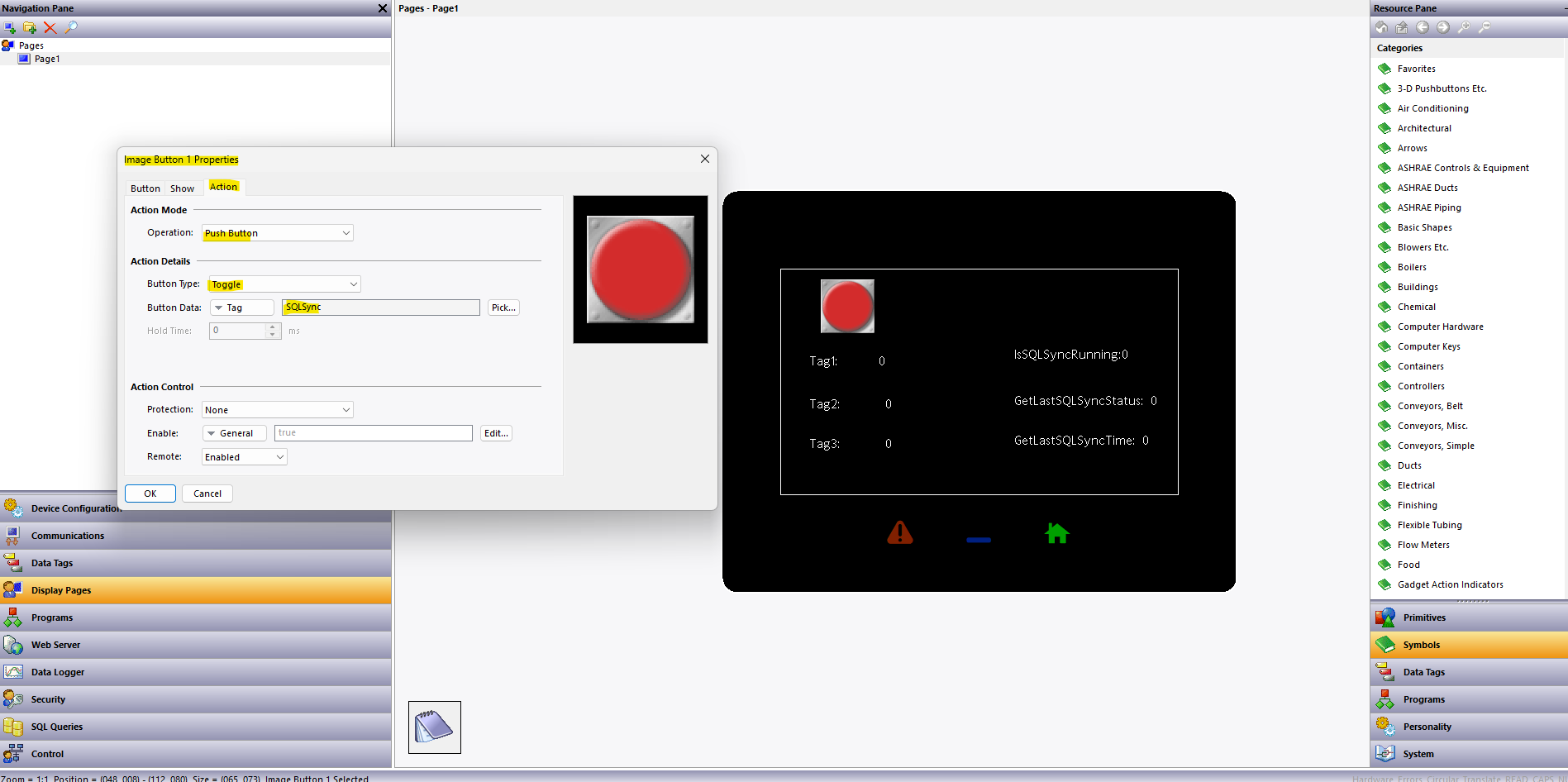 Example of ForceSQLSync connected to a push button on display page see figure 7
