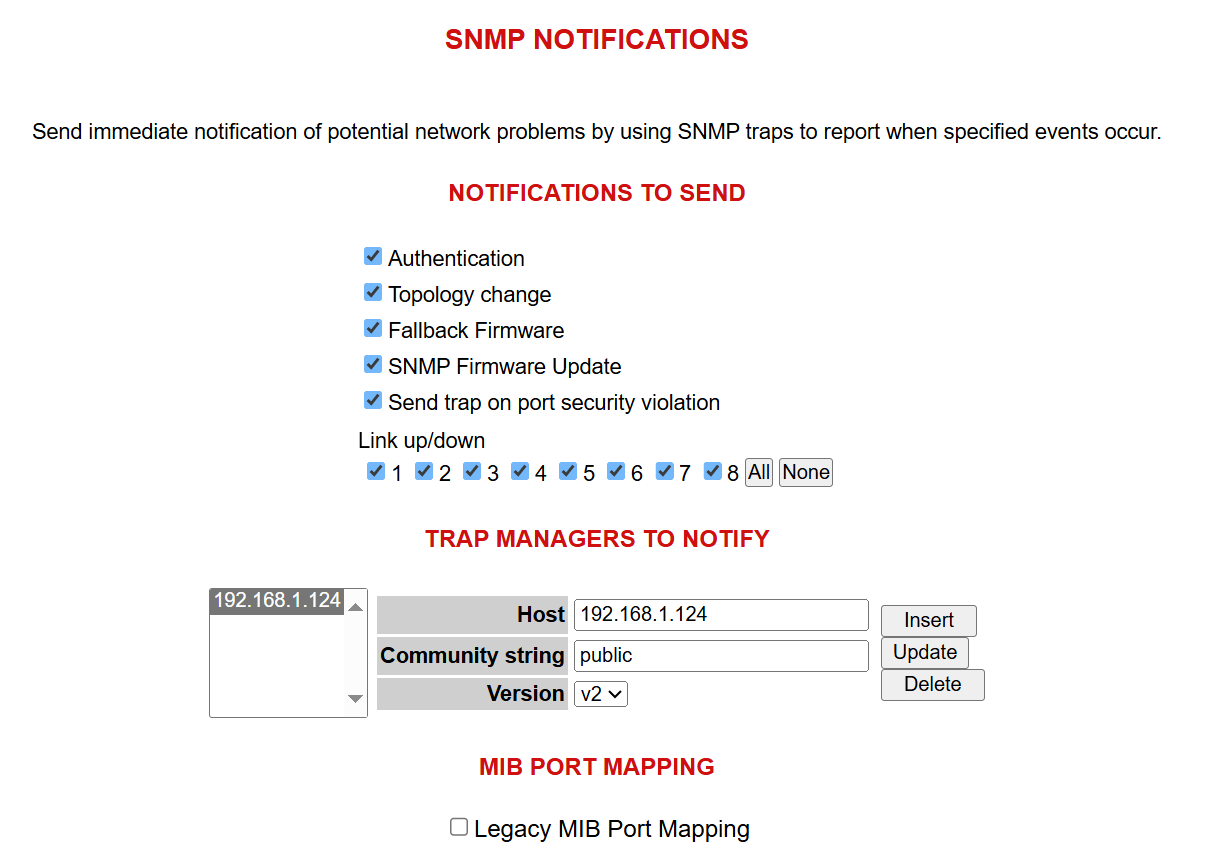 Depending on your switch, Configure the SNMP settings as matching the product families below. Click on the link below to jump to your product.