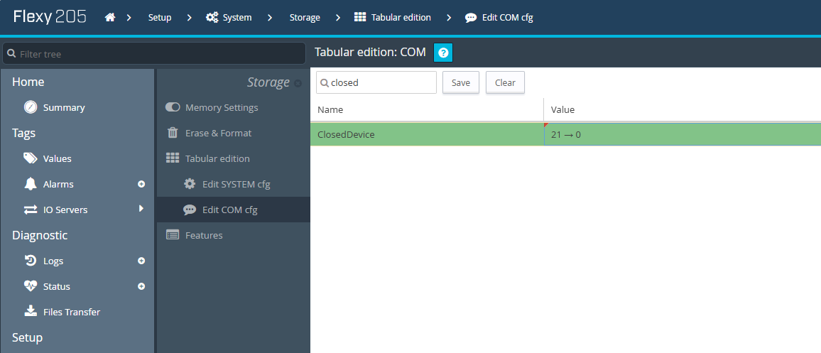- If you are connected on the LAN side: → Set ClosedDevice = 0 (FTP opened on LAN and VPN).