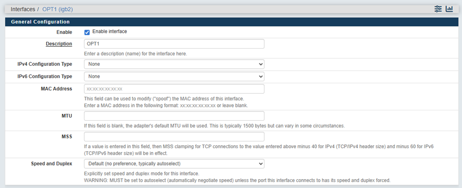 Interfaces -> Assignments -> Available network ports