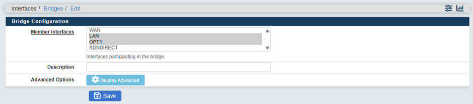 In Member Interfaces hold Ctrl and click the interfaces you want to add to the bridge, you can also add a Description.