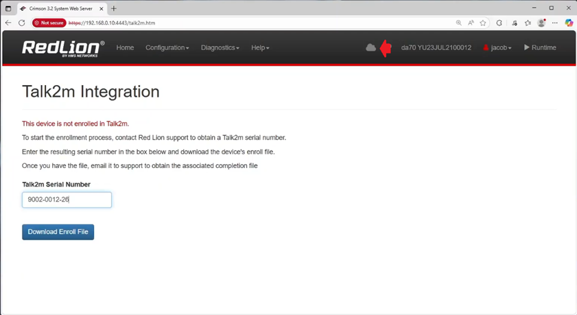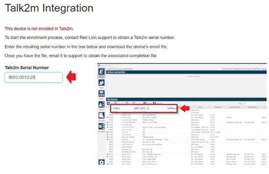 3. Input the serial number that your FlexEdge was assigned in eCatcher, into the Talk2m Serial Number field