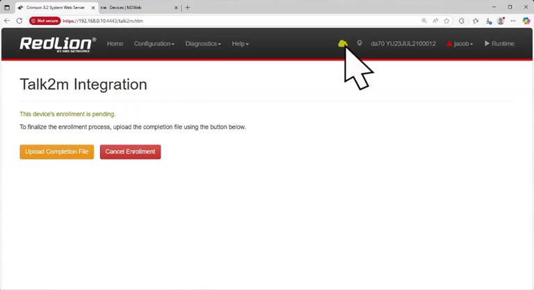 8. Then navigate to the Talk2m Integration page on the FlexEdge web UI again