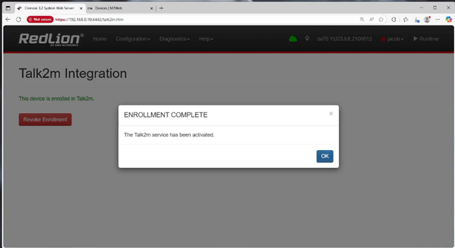 10. The FlexEdge is now enrolled in Talk2m