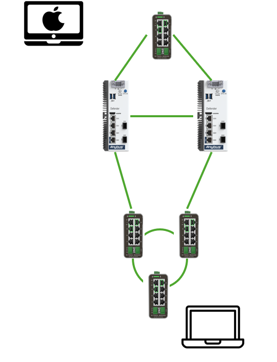 This guide provides guidance how to setup a redundant switch network using N-Tron 5000 series in combination with a redundant firewall setup using Anybus Defender.