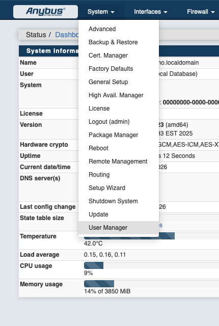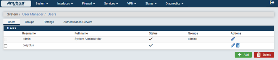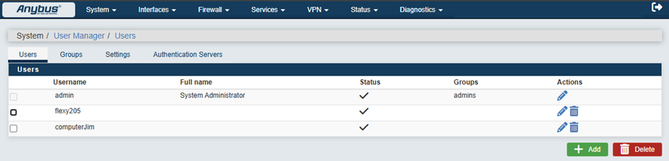 We must create a user for each Flexy/Cosy device that will be connected to the server on this Defender.