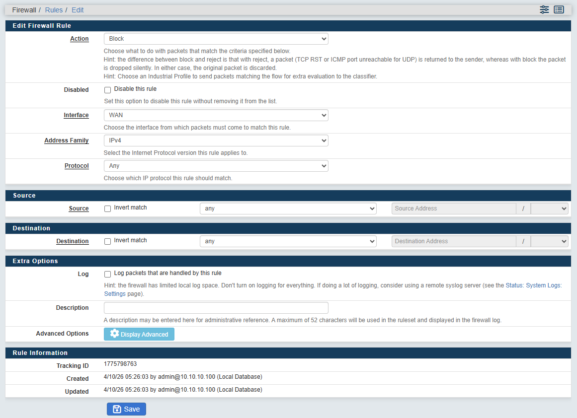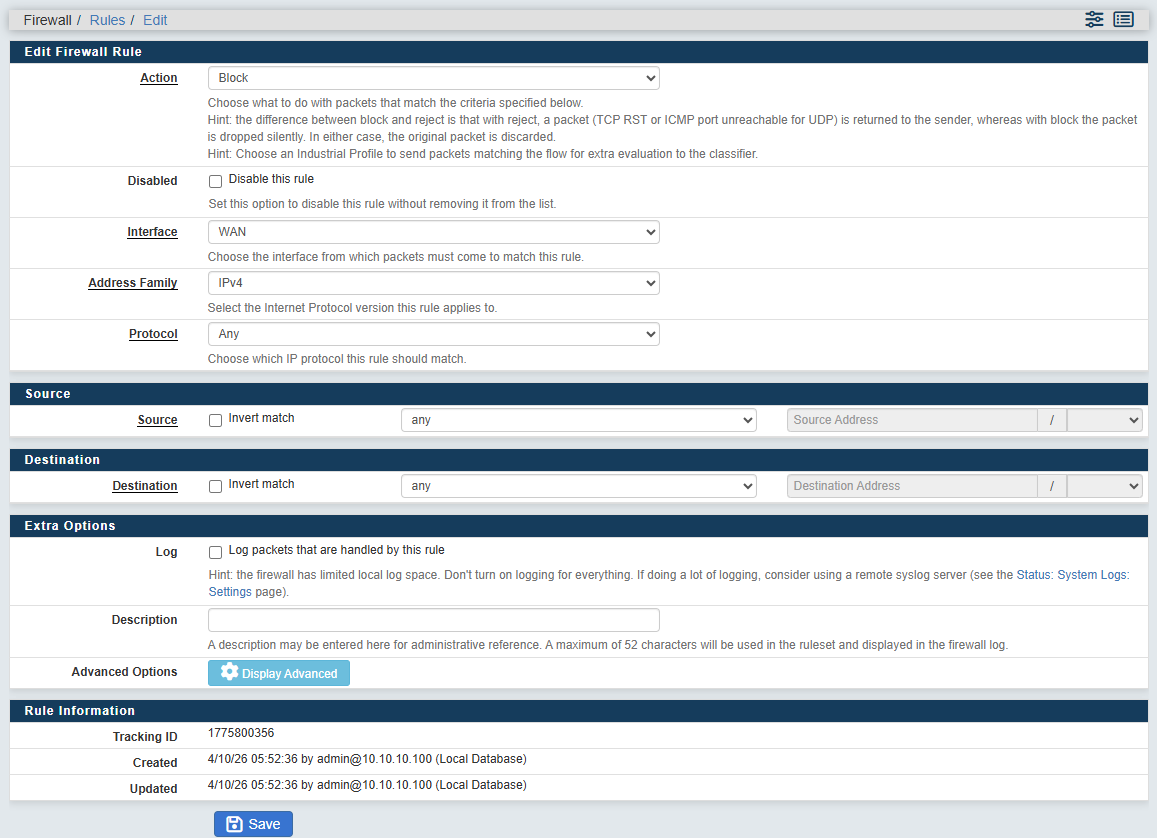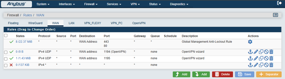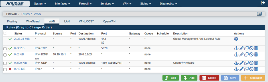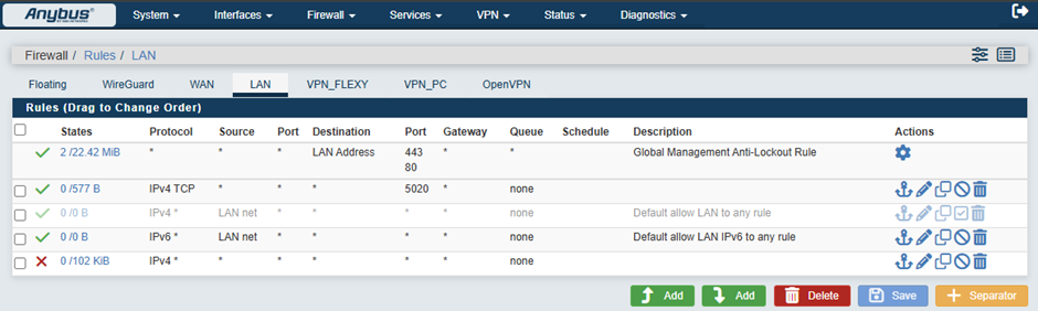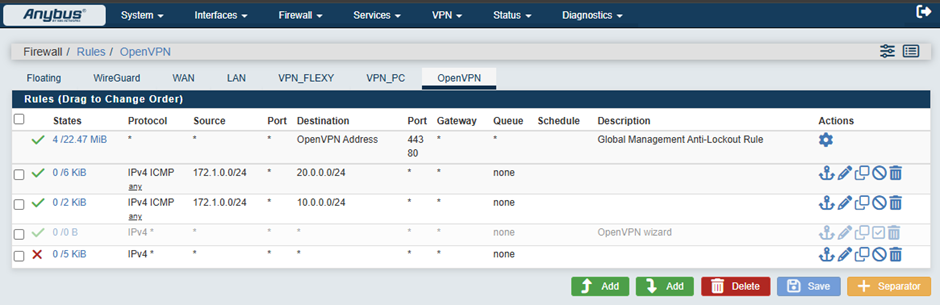 Save.Here are two ICMP rules have been added to test the connectivity by pinging the devices behind the Flexy/Cosy LAN.