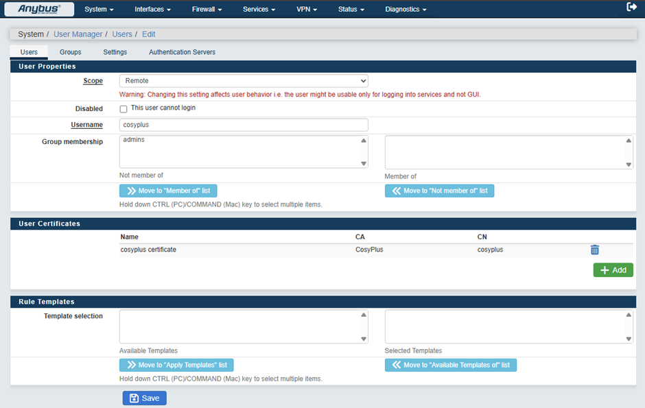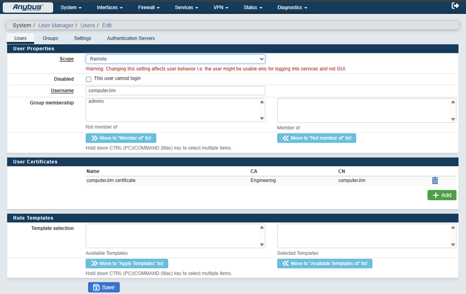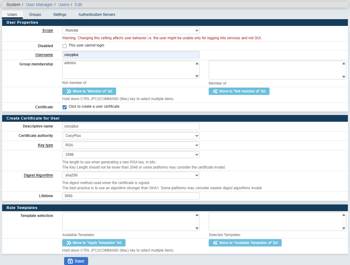 Chose the correct "Certificate Authority" depending on if you are creating a user for a Ewon Device or an Engineering User.