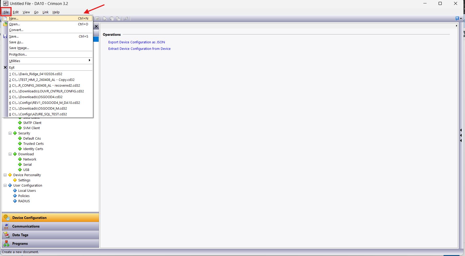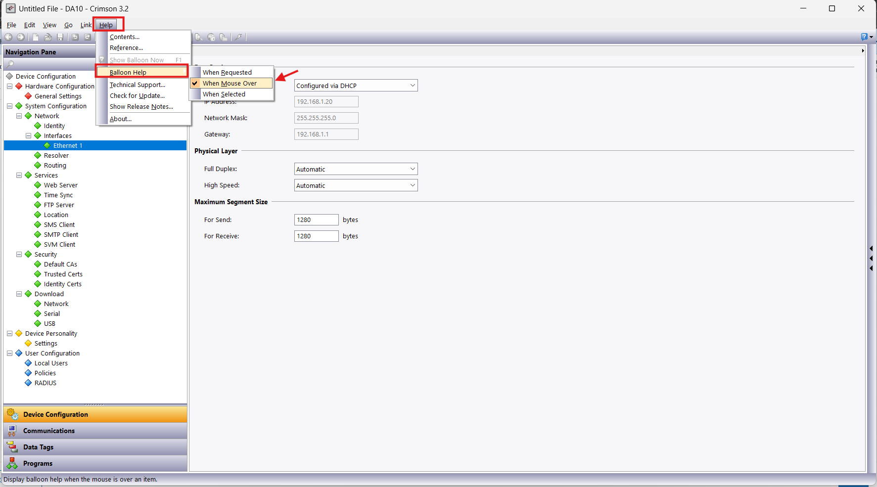 Note: A helpful tool when navigating the Crimson 3.2 software is the Balloon Help