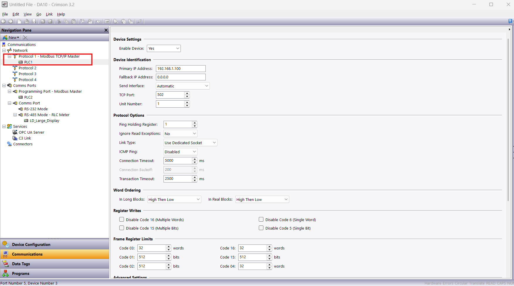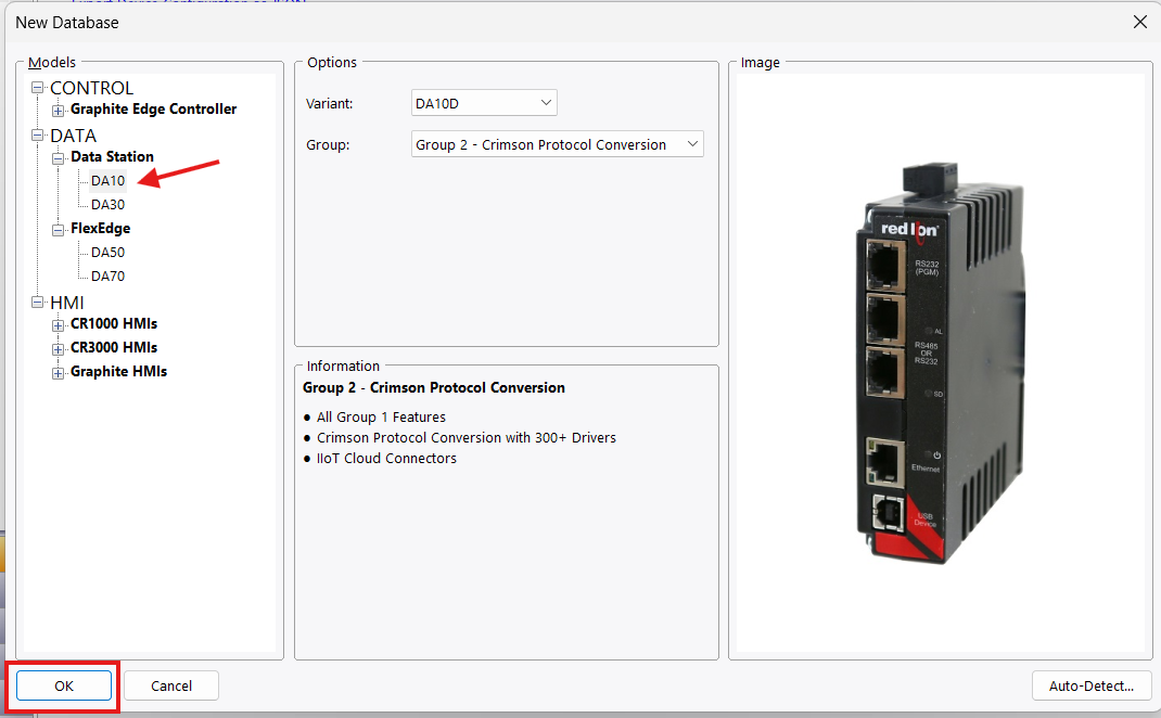 Create and Configure DA10 in Crimson Table of Content