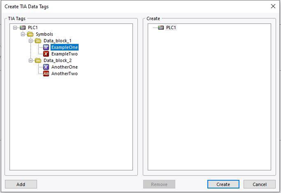 2. Select only the required symbolic tags to minimize communication load.