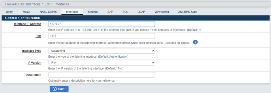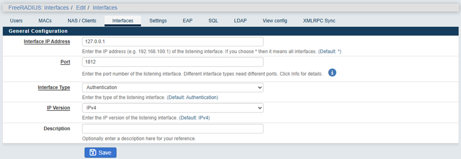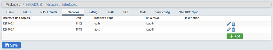Services → FreeRADIUS → Interfaces → Add