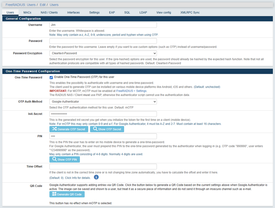 Hereafter the user must be created in the RADIUS server.