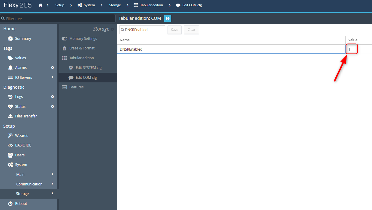 Setup > System > Storage > Tabular edition > Edit SYSTEM config.