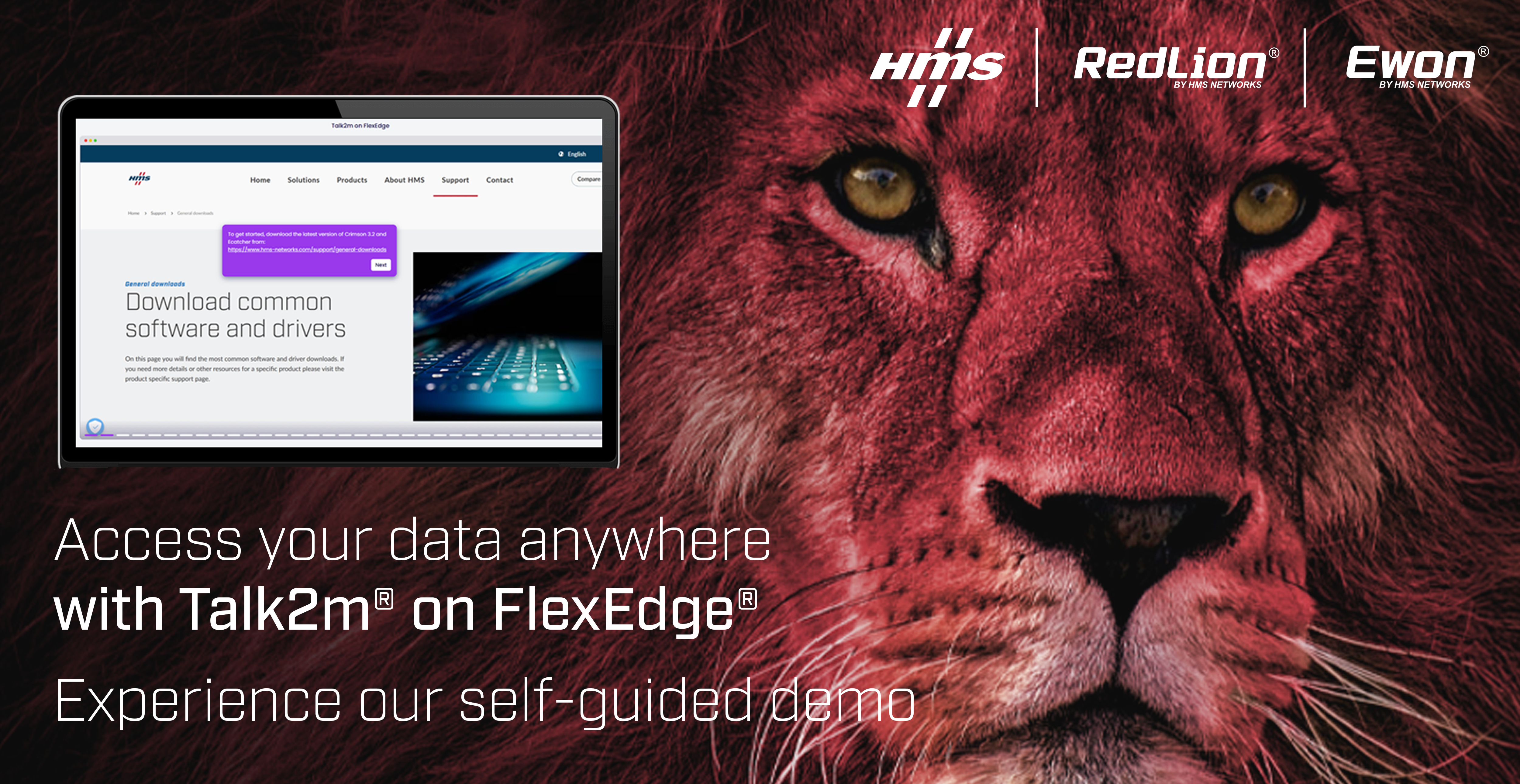 HMS Networks now brings the best of both worlds together—Red Lion®'s FlexEdge® rugged industrial controller and Crimson® configuration software with Ewon®'s Talk2m® cloud infrastructure.