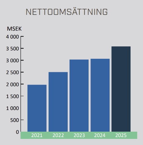 År 2025 uppgick HMS omsättning till 3 577 (3 059) MSEK och justerat rörelseresultat till 991 (665) MSEK.
