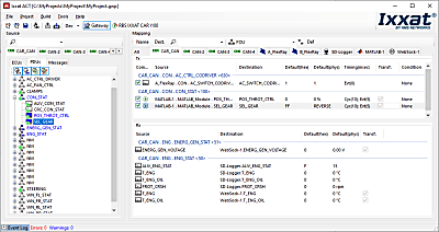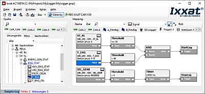 How can you configure a gateway application? All you need to do is to use the gateway view of the ACT tool and use the drag & drop concept to define the source and destination relation. Just drag the desired data from the source bus and let it drop on the destination – not relevant whether this is a real bus system or the user code, logger or something else. At the end, the created configuration can be loaded on an Ixxat embedded platform and executed standalone.