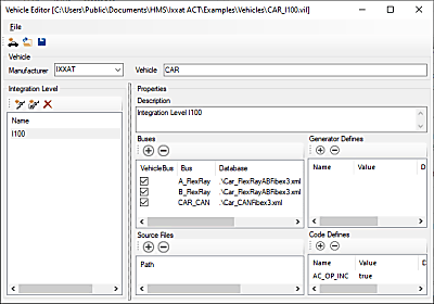 The Vehicle Editor allows to create a complete vehicle description database containing all information needed. In case of changes during the life cycle of your testing application (e. g. new vehicle integration levels), a new variant of such a vehicle description database can be created which then allows then an easy porting of existing residual bus or gateway configurations. This saves time and reduces the risk of introducing errors into already verified testing configurations.