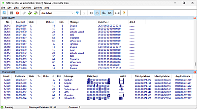 | Receive messages and online display in layer 2 format | Receive | X (only scroll view) | X (overwrite and scroll view) | X (overwrite and scroll view) |