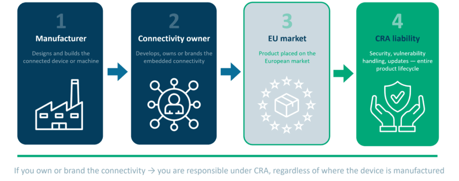 And here is the uncomfortable truth: If you develop, own, or brand the connectivity inside your device, the CRA makes you fully responsible for proving that it is secure, updatable, and properly maintained throughout its entire lifecycle.