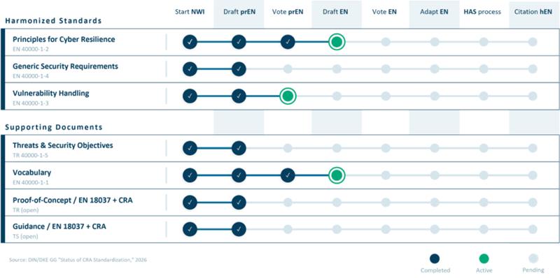 Figure 3. The current development status of the harmonized standards and supporting documents expected to underpin CRA conformity.