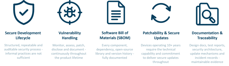 Manufacturers must demonstrate that the connectivity in their product is developed and maintained under a structured, repeatable, and auditable security process. Informal or ad hoc practices are not enough.